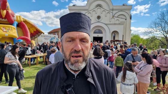 Свештеник Данило Николић истиче да је данашњи дан велики празник, али да га посебно радује оволики број деце у порти цркве.