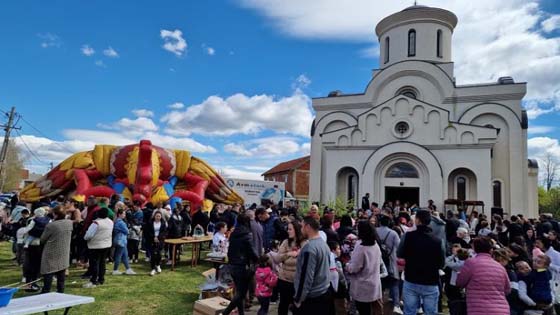 Порта цркве била је пуна малишана који су се звончићима око врата вратили традицији и коренима. Леп призор је био видети младе родитеље, баке, деке и посебно малишане који су били раздрагани и свечано одевени, а неки су за ту прилику обукли и народну ношњу. Велику пажњу изазвале су музичке нумере и стихови које су малишани изводили на самом уиласку у цркву.