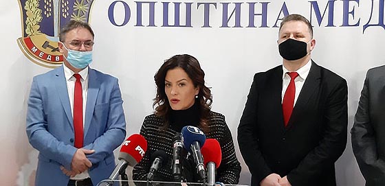 Министарка државне управе и локалне самоуправе Марија Обрадовић боравила је данас у посети општини Медвеђа, где је разговарала са руководством општина Медвеђа, Лебане и Бојник о актуелној ситуацији, имајући у виду проглашене ванредне ситуације у овим општинама услед епидемије КОВИД-19 и недавних поплава, као и о пројектима које општине могу реализовати буџетским средствима добијеним на конкурсу MDULS.