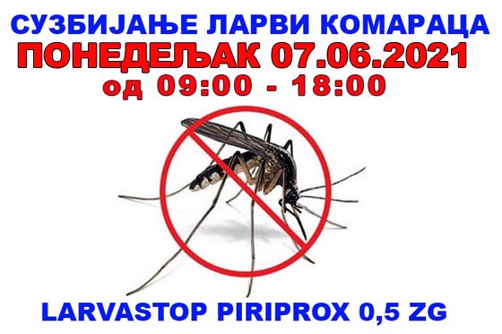 Обавештавамо јавност да ће у понедељак, 07.06.2021.године, уколико се стакну неопходни метео услови, предузеће SANIT M&M d.o.o из Ниша, почети третман сузбијања ларви комараца на територији општине Бојник, у складу са Уговором бр.404-02-22/2021-02/5 од 12.04.2021.године.