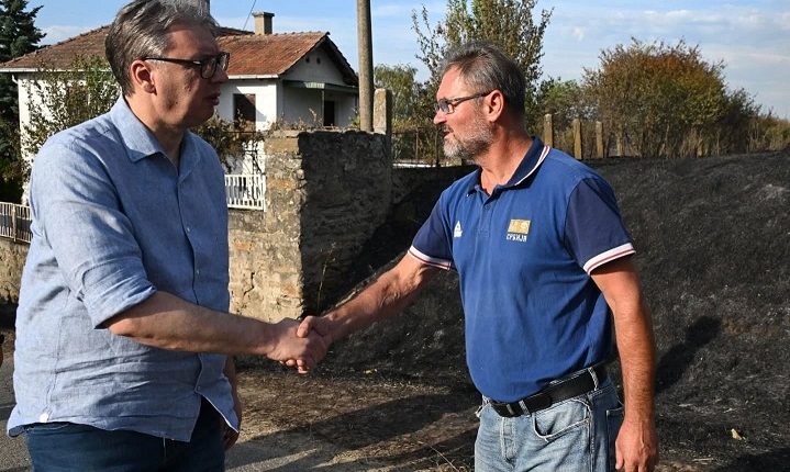 Он је јуче разговарао и са грађанима у селу Ново Момчилово у општини Житорађа, чије су куће изгореле или оштећене у пожарима који су захватили Топлички округ.