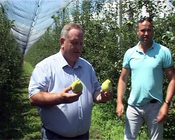 Власник газдинства Драган Ђорђевић провео је градоначелника и новинаре кроз плантажу објаснивши да користе најсавременије мере заштите од града и мраза и да ове године очекују око 300 тона приноса крушке и јабуке.